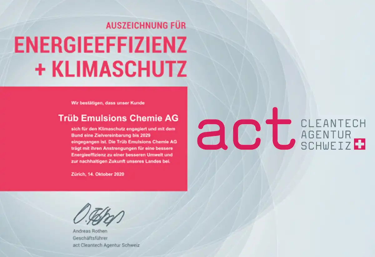 Seit 2020 übernimmt offiziell TEC AG Verantwortung und setzt sich verstärkt für eine nachhaltige Zukunft ein. Im Rahmen einer Zielvereinbarung mit der act Cleantech Agentur Schweiz verpflichten wir uns zur Optimierung der Energieeffizienz und zur Reduktion unserer CO2-Emissionen. Die Zielvereinbarung ist vom schweizerischen Bund und Kantonen anerkannt